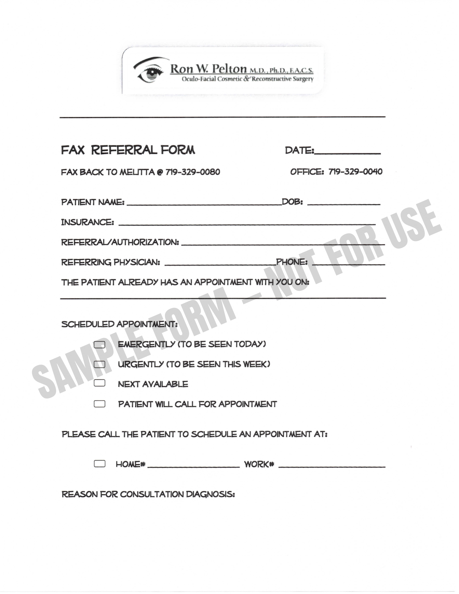 This is what the office gives to outside providers to refer patients to the practice. I updated it with new logo, modern font and took off the name of the employee who received them. The new provider in the office was also added recently to all the forms.